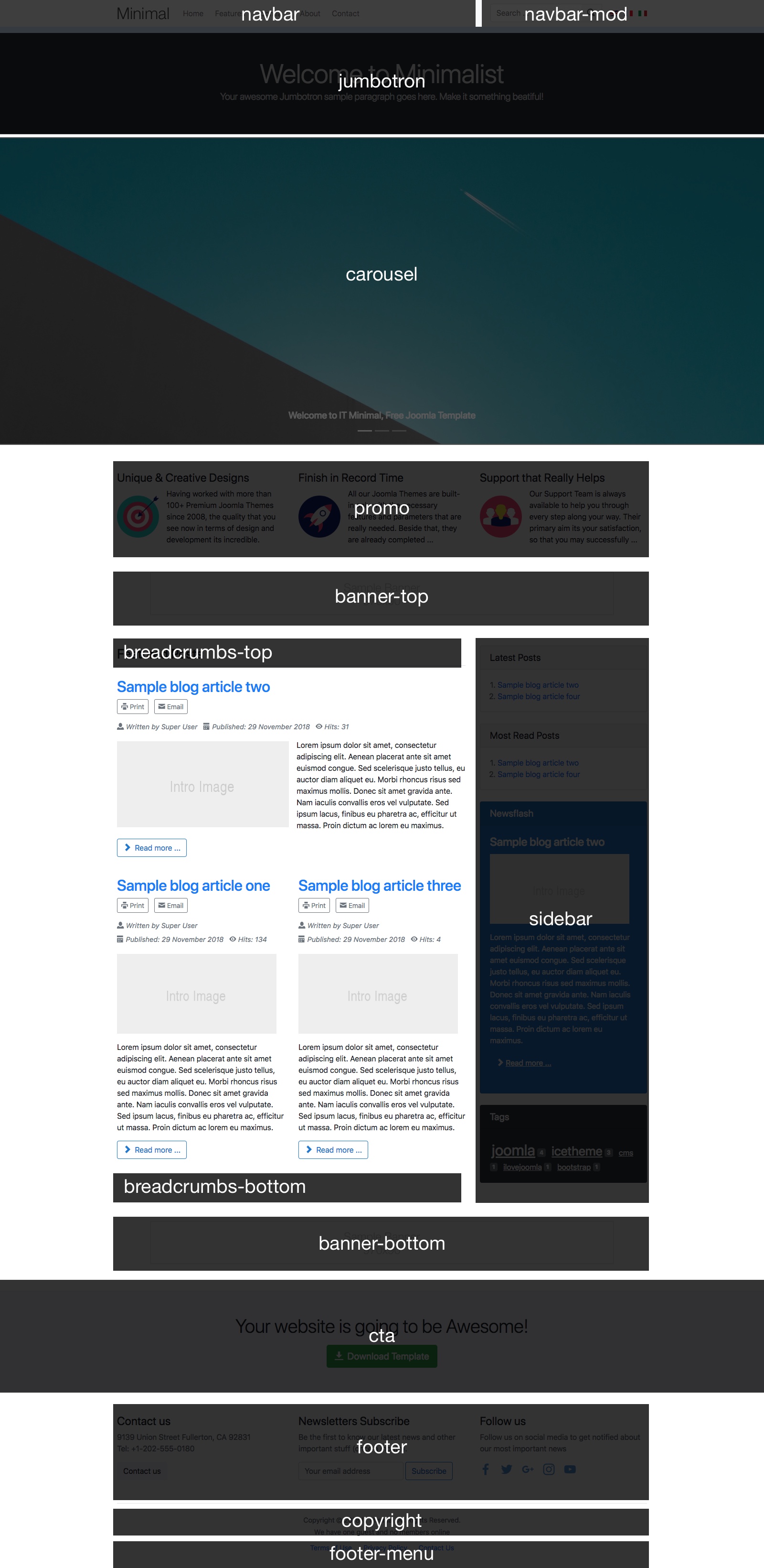 Take the time to see all available module positions for our Joomla Template.
